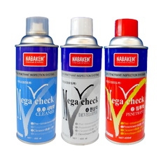 Hóa chất kiểm tra vết nứt Nabakem Megacheck gồm 3 loại: hóa chất làm sạch Megacheck Cleaner, hóa chất thẩm thấu vết nứt bề mặt Megacheck Penetrant, hóa chất hiện khuyết tật Megacheck Developer.