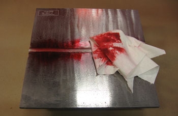 Bước 3: Đợi 10 đến 15 phút sau khi một phần dung dịch hóa chất thẩm thấu đã đi sâu vào bên trong các khuyết tật (nếu có), sử dụng khăn giấy lau bề mặt đối tượng.