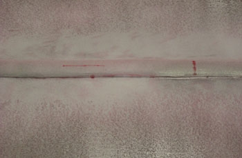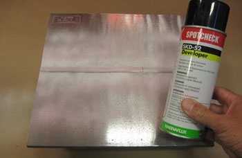 Bước 4: Tiếp theo, phun chất phát hiện Megacheck Developer lên bề mặt mục tiêu và quan sát sự thay đổi màu sắc trên mối hàn.